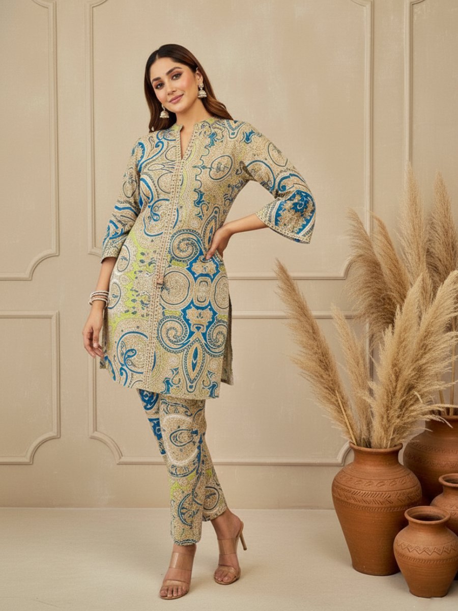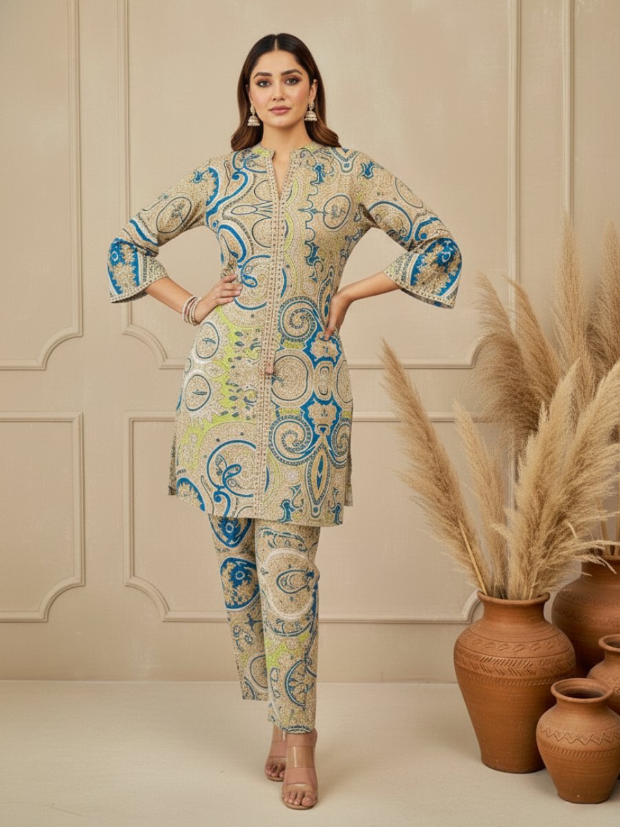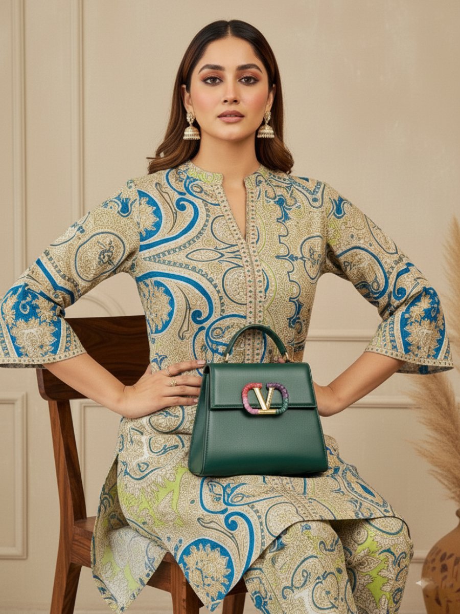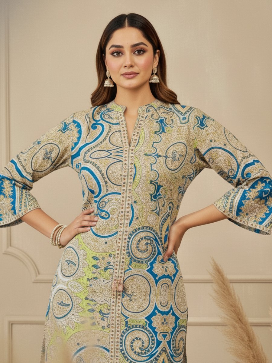The Stylish Maslin Digital Print Kurta Pant Set: Classy & Comfortable