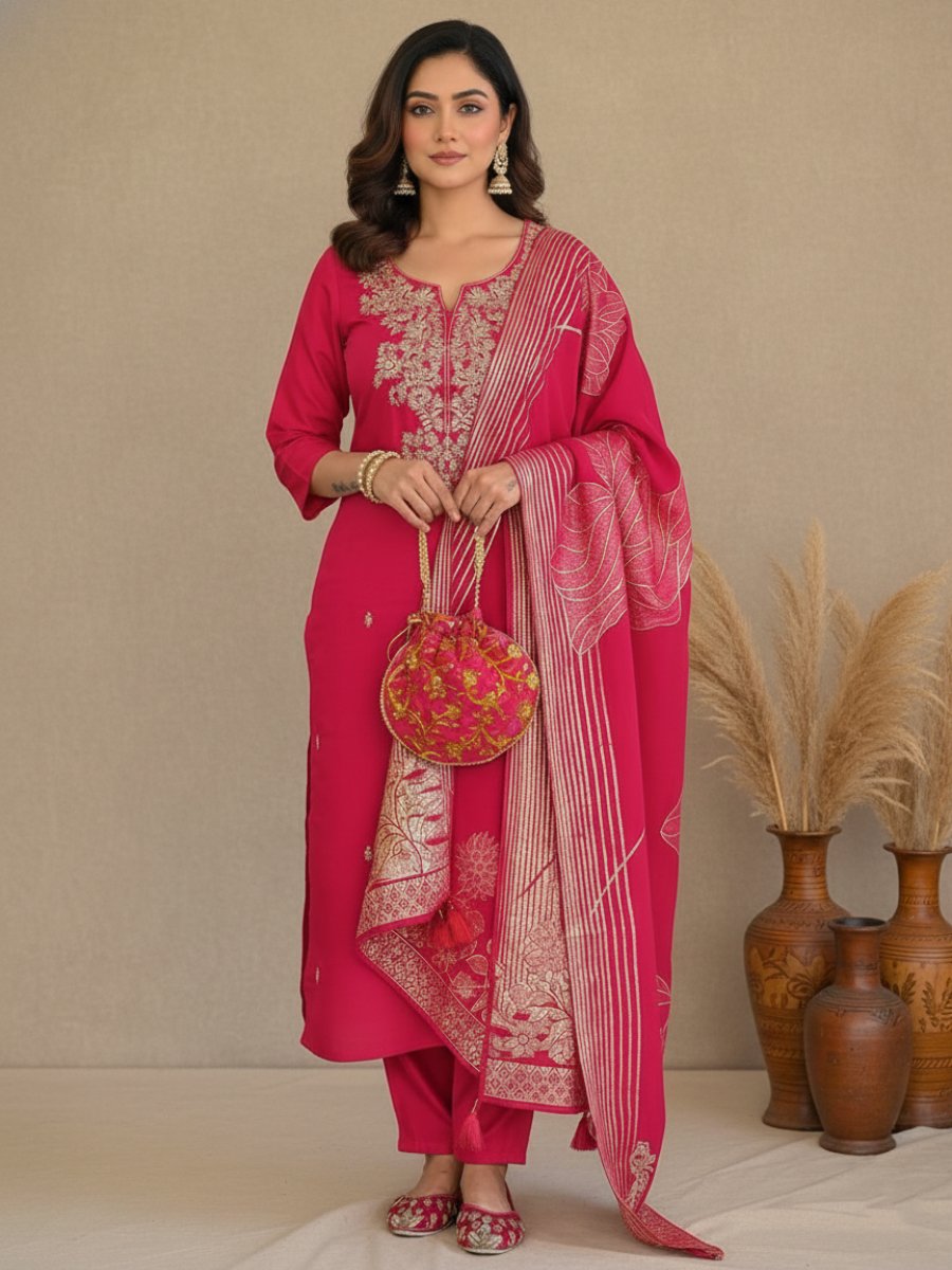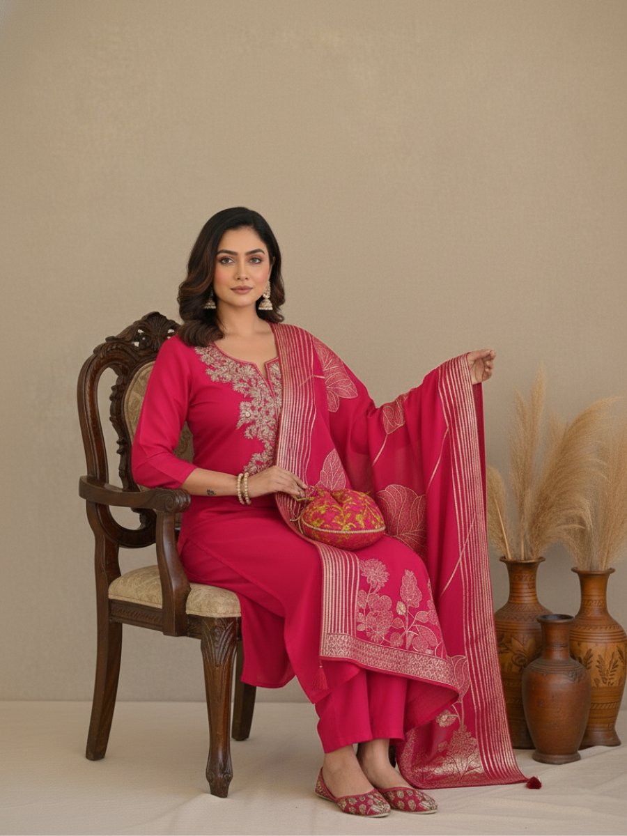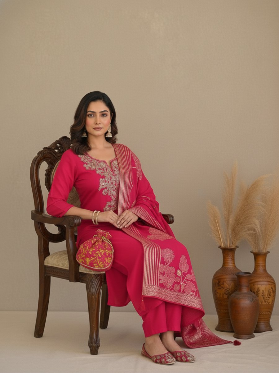 Heavy Roman Silk Embroidered Kurta Set with Luxurious Chanderi Jaquard Dupatta