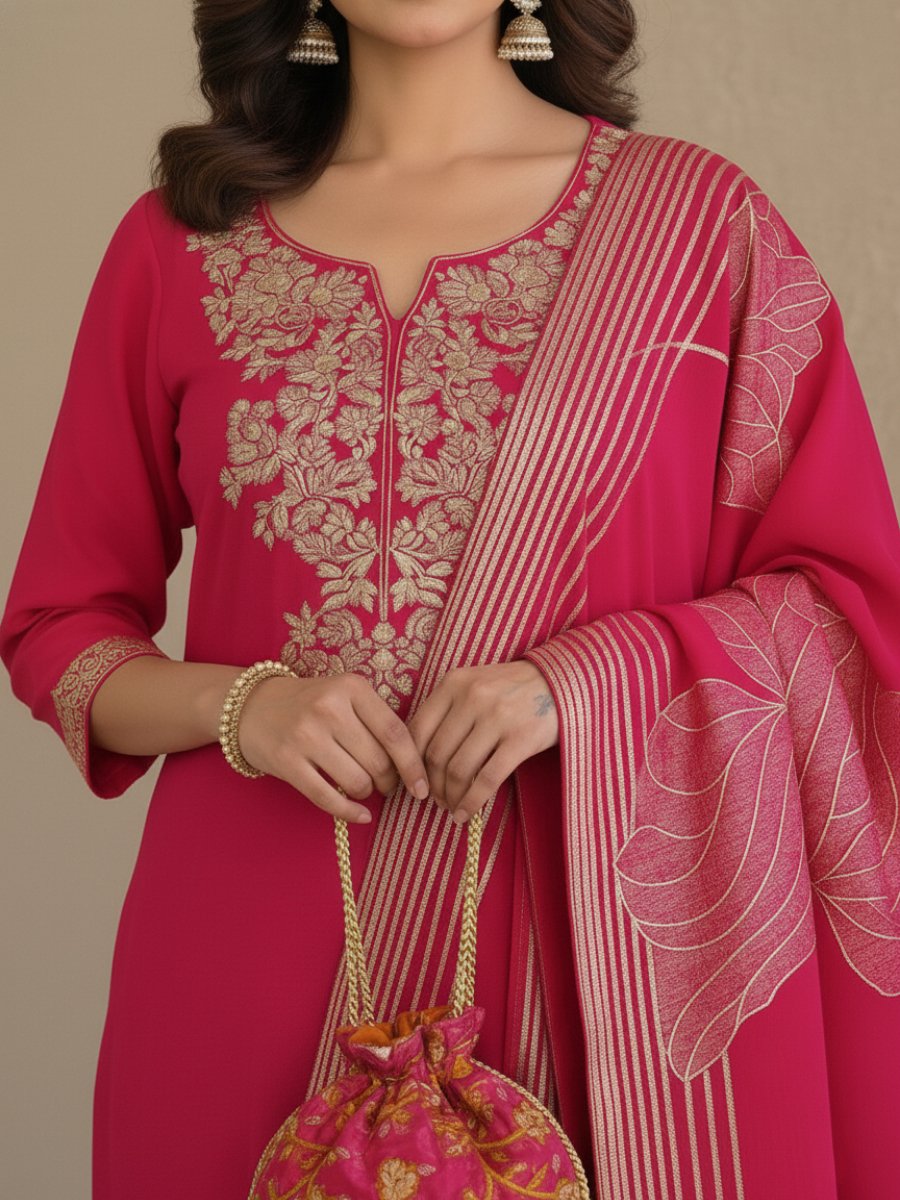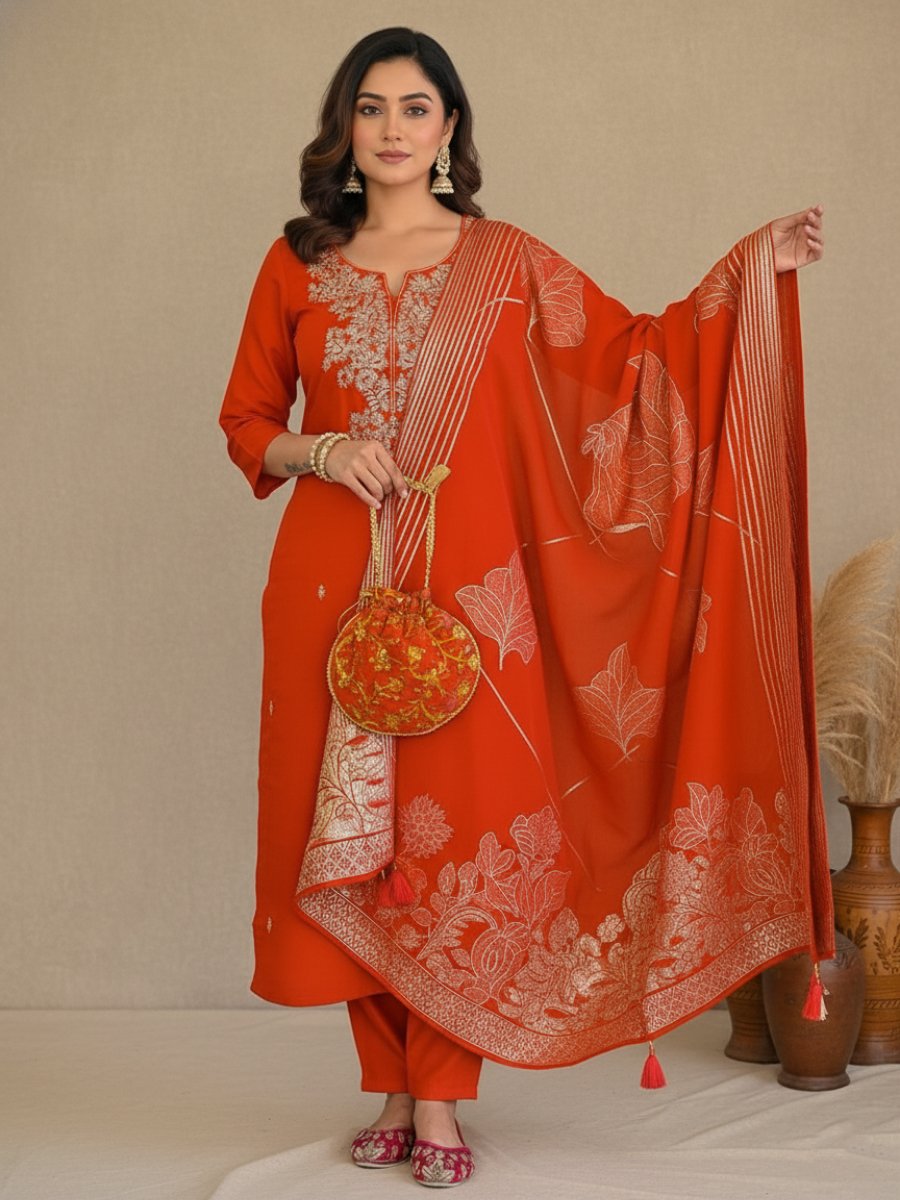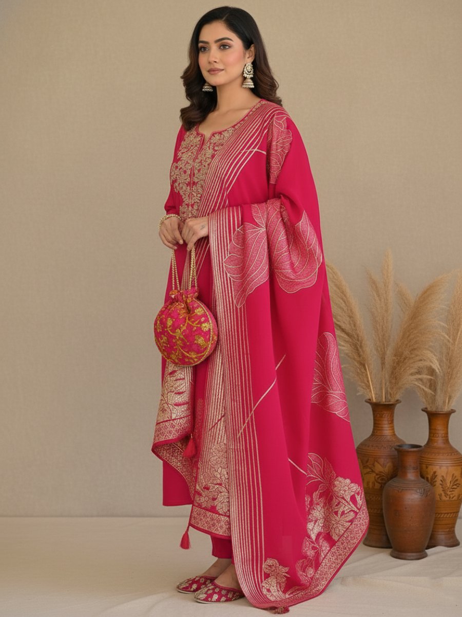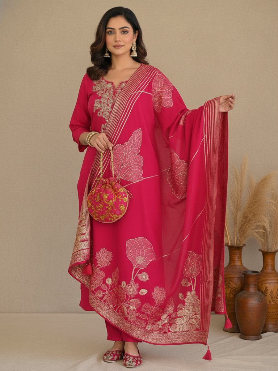 Heavy Roman Silk Embroidered Kurta Set with Luxurious Chanderi Jaquard Dupatta